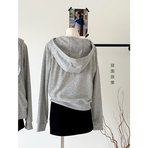 灰色连帽卫衣女修身百搭设计感翻领美式开衫外套上衣2025秋季新款