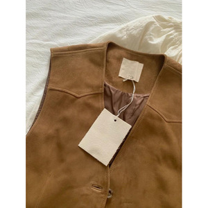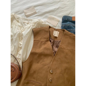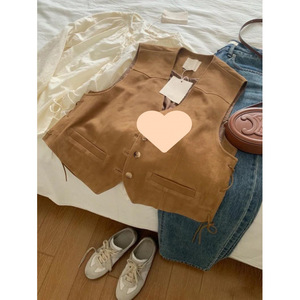 重工复古设计感麂皮绒马甲女秋冬韩版洋气叠穿外搭系带短款背心