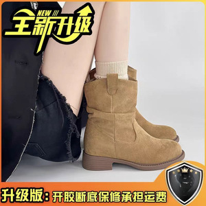 增高8cm马丁靴女秋款中筒显瘦小个子堆堆褶皱百搭复古女靴短靴男
