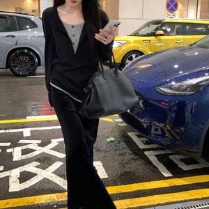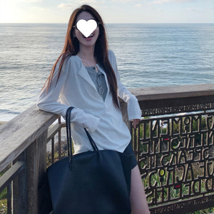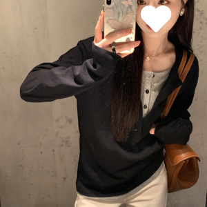 白色假两件长袖T恤女秋2025新款撞色垂感微宽松慵懒休闲翻领上衣