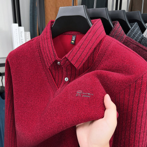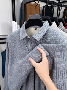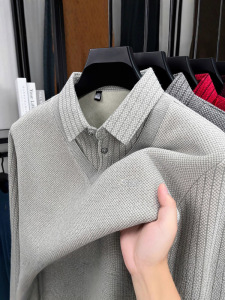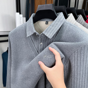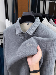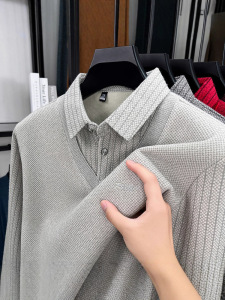 加绒POLO假两件男士秋冬加厚中年爸爸装休闲保暖上衣打底衫男