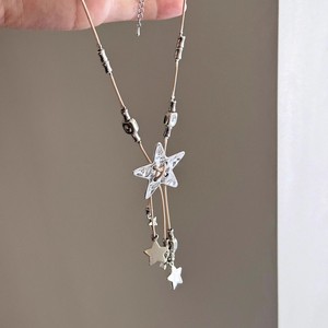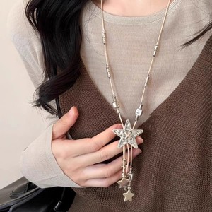 复古银色星星流苏项链女小众设计独特个性毛衣链甜酷百搭长款配饰