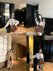 区区欧阳 抽褶半身裙女秋季新款复古花苞裙短裙辣妹短款A字裙裙子