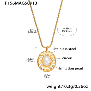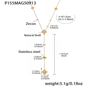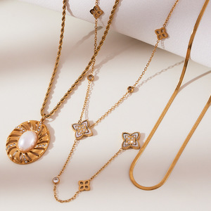 欧麦卡精致四叶批花锆石Y字项链镀18k金椭圆吊坠双层叠戴组合首饰