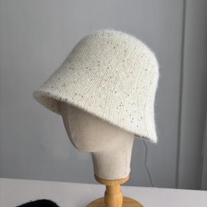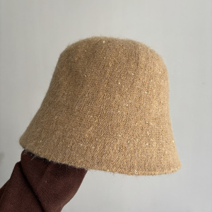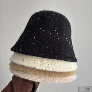 兔毛针织亮片渔夫帽女士2025秋冬新款时髦百搭显脸小盆帽