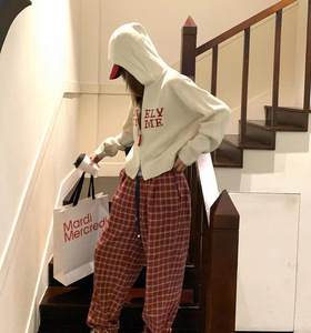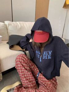 2025年秋季新款印花拉链帽衫长袖针织开衫女字母休闲百搭毛衣外套