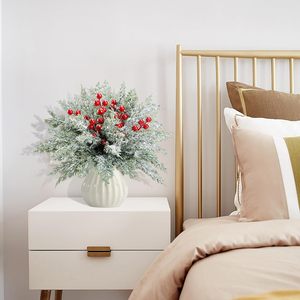 跨境仿真绿植圣诞松柏支红果花束 diy插花装饰假花配件家居摆件