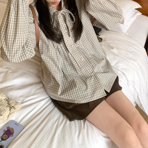2025秋季米兰游记黑白格飘带叠穿衬衫+百搭针织马甲无袖上衣