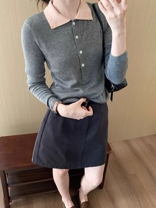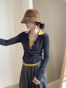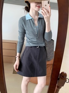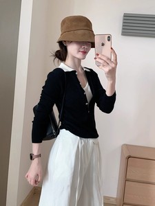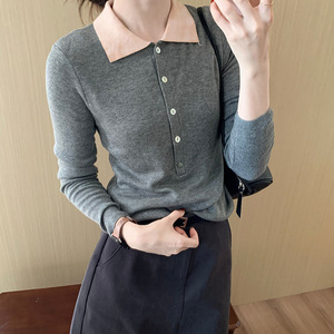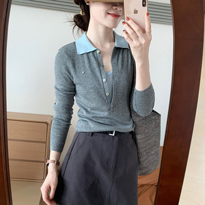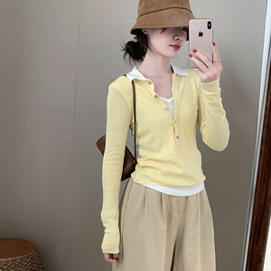 话里撞色假两件POLO衫2025秋季新款韩版叠穿免搭配休闲显瘦上衣女