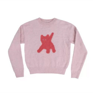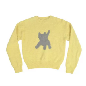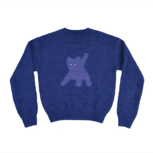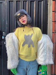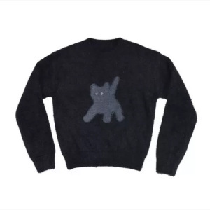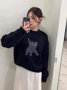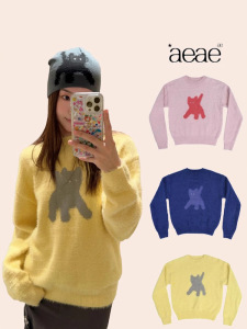 韩国潮牌aeae猫咪反光眼睛马海毛圆领毛衣女短款针织衫上衣秋冬季