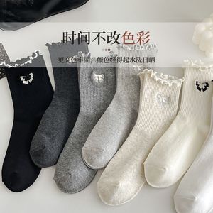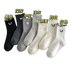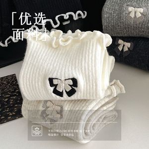 春秋款女生纯色潮流蝴蝶结袜子女中筒袜秋季日系花边舒适百搭长袜