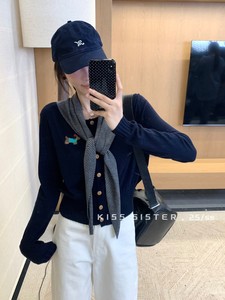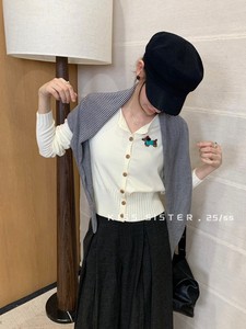 2025秋季新款休闲风时尚刺绣腊肠狗狗针织衫收腰厚款上衣配披肩