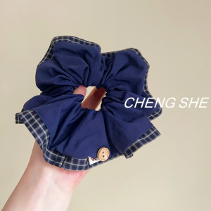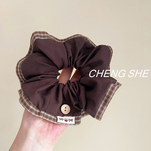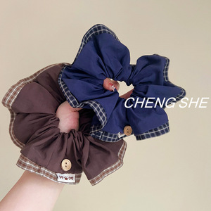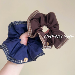 韩国文艺格纹大肠发圈女高级感洋气低扎马尾头绳褶皱发绳头饰发饰