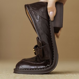 羊皮版~山茶花软底乐福鞋女2025春新款厚底粗跟单鞋一脚蹬小皮鞋