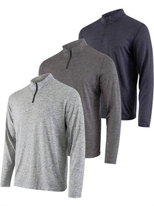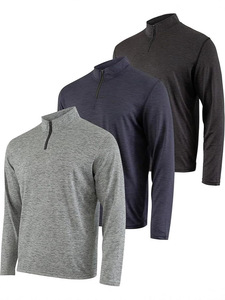 跨境新款半开拉链运动衣长袖T恤男士吸湿透气徒步健身跑步亨利衫