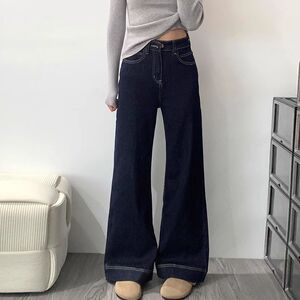 深蓝色丹宁微喇牛仔裤女2025春秋冬新款小个子高腰显瘦马蹄喇叭裤