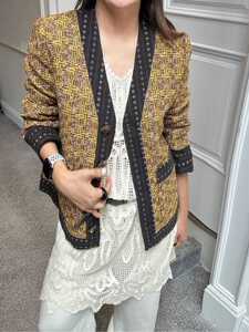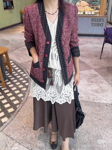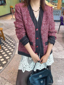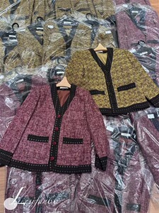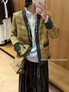 2025秋季新款两色复古花色V领编织粗花呢小香风宽松廓形外套 29