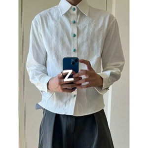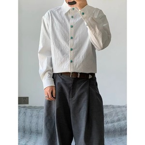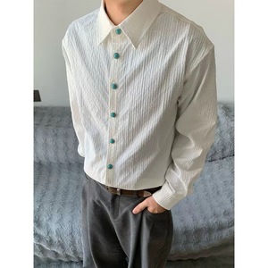 海洋绿松石肌理长袖衬衫男款秋季美式褶皱老钱风衬衣cleanfit外套