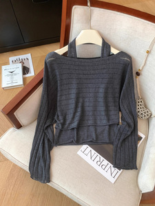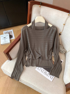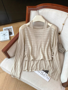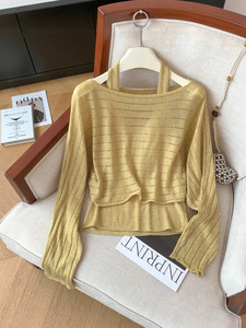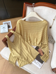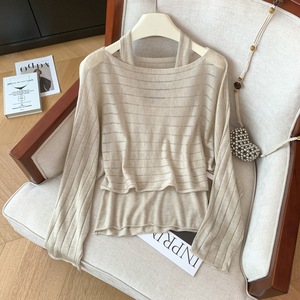 2025秋季新款女装韩系显瘦针织长袖上衣女条纹百搭叠穿背心A7441