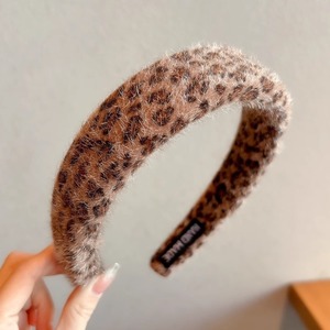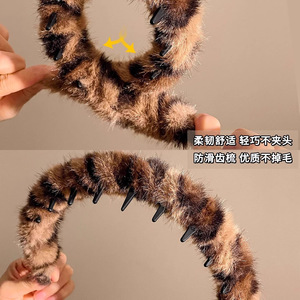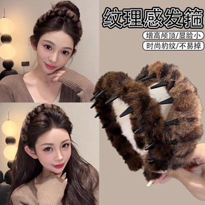 高级感复古豹纹发箍女高颅顶显脸小头箍秋冬毛绒压发发卡头饰批发