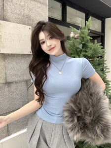 秋季女款上衣半高领加绒打底衫高弹修身显瘦基础款内搭短袖T恤