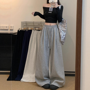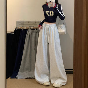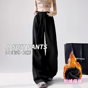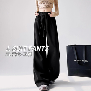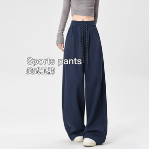 高腰运动裤子女秋季2025新款高级垂感宽松bf慵懒休闲阔腿美式卫裤