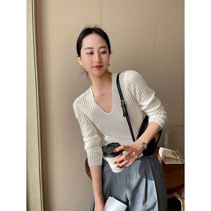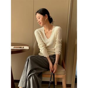 秋季内搭针织打底衫女修身薄款2025新款时尚纹理大众设计针织毛衣