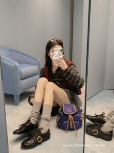 牛皮版~真皮复古风皮带扣德训鞋女软底系带休闲运动芭蕾舞小皮鞋