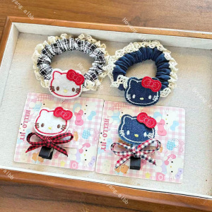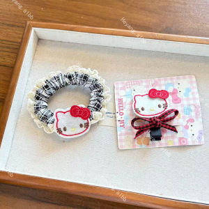 新款卡通猫咪刘海侧边夹发夹甜美少女心蕾丝边发圈发绳百搭发饰
