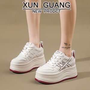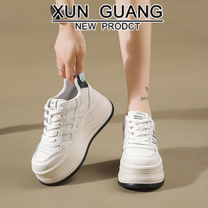 厚底隐形内增高9公分小白鞋女2025秋季新款松糕板鞋轻便休闲女鞋