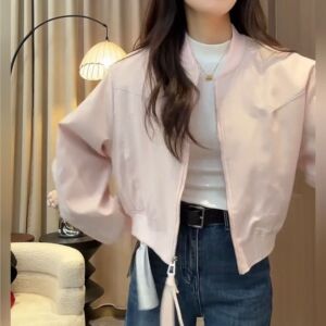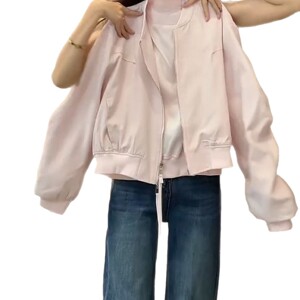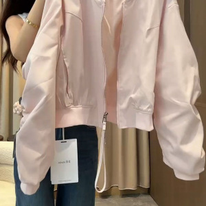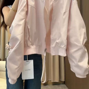 早秋新款小个子粉色高端棒球服外套女高级感慵懒风宽松长袖上衣女