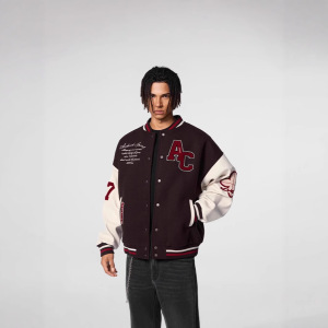 2025春秋新款美式复古撞色棒球服外套毛巾绣新款飞行员夹克休闲上