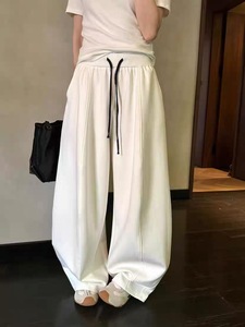 镇店之宝2025秋高腰直筒阔腿垂感卫裤女松紧腰多色抽绳运动休闲裤