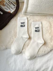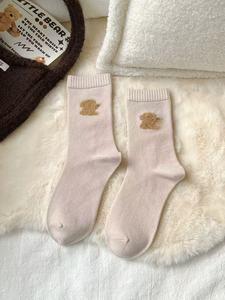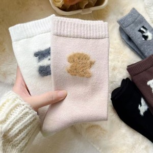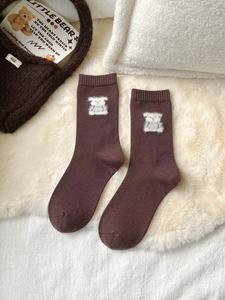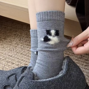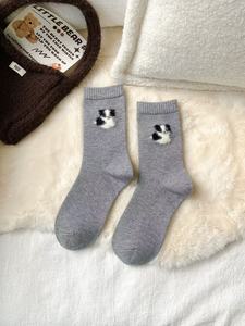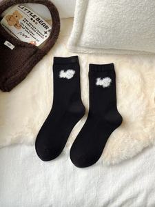 袜子女秋冬季新款植绒可爱卡通羊毛中筒袜加厚加绒狗狗羊绒堆堆袜