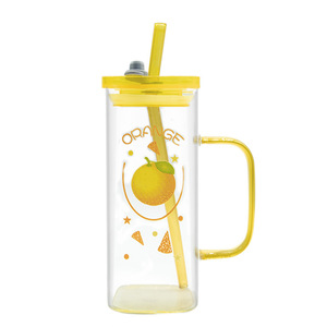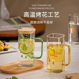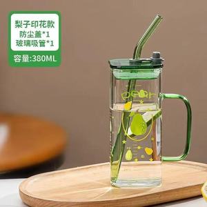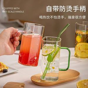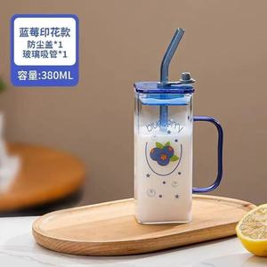 高硼硅彩色玻璃把手杯高颜值水杯ins牛奶吸管杯果汁杯方形玻璃杯