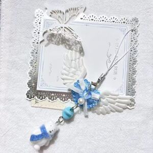 【蓝色爱心翼】手作串珠钥匙扣少女心ins包包相机链挂件咕本挂饰