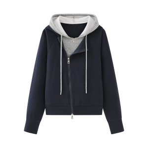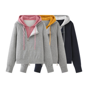 2025秋季新款时尚百搭设计感小众气质假两件连帽卫衣外套上衣女