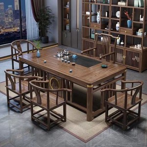 新中式茶桌椅组合实木茶台家用办公阳台一体一整套功夫茶桌