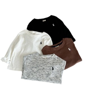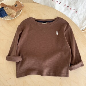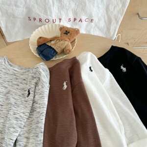 跨境儿童长袖T恤秋款男童日系潮牌纯色打底衫宝宝内搭中小童上衣t