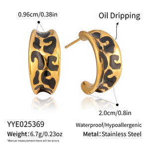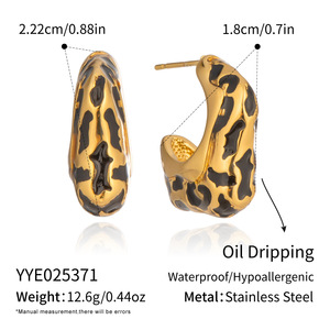 夏凌小众滴油黑色豹纹铸造耳环不锈钢真空电镀复古气质不掉色耳饰