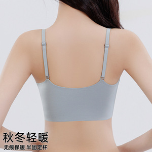 秋冬轻暖无痕套头式吊带抹胸百搭内搭固定杯内衣女软支撑文胸保暖