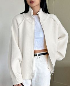 慵懒风毛衣外套女2025秋冬新款韩系纯色立领拉链针织开衫上衣