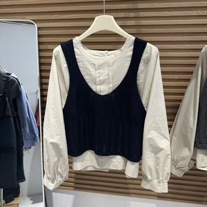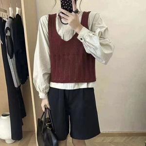韩系高级感气质圆领衬衫女2025年春秋新款宽松小众针织背心两件套