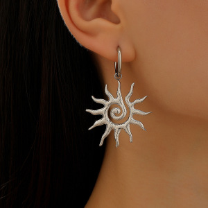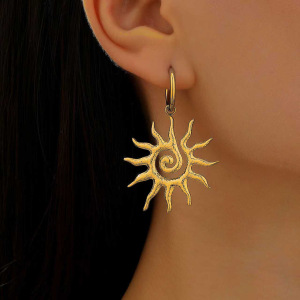 欧美跨境热卖螺旋太阳花吊坠耳环INS风时尚轻奢感不锈钢饰品耳环