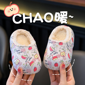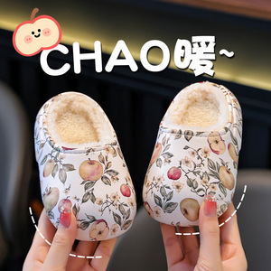 秋冬儿童印花棉拖鞋居家室内包头棉鞋可爱卡通软底男女童保暖棉鞋