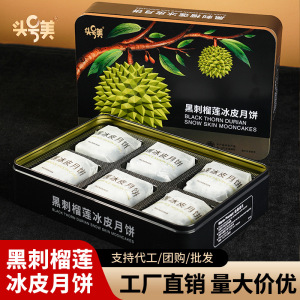 冰皮月饼礼盒装马来西亚进口黑刺榴莲馅香糯可口源头工厂月饼批发