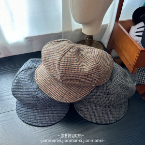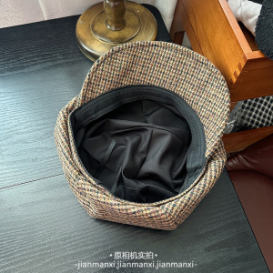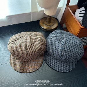 2025新款秋冬格子八角帽子女英伦复古报童帽时尚百搭英伦风画家帽