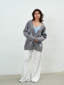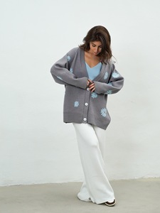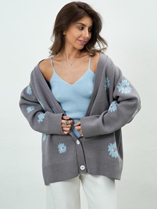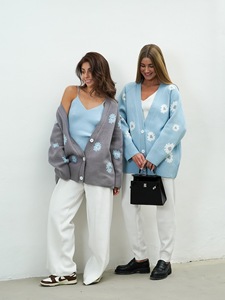 慵懒风垂感秋冬保暖外穿毛织开衫外套女小雏菊刺绣宽松单排扣上衣