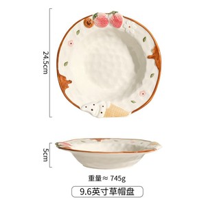 海派甜心手绘浮雕釉下彩陶瓷草莓卡通碗碟盘沙拉意面甜品少女心