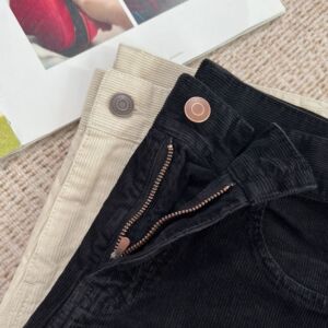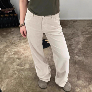 HOUSE25秋冬 两色高级简约 棉质细条灯芯绒 中腰直筒休闲裤女